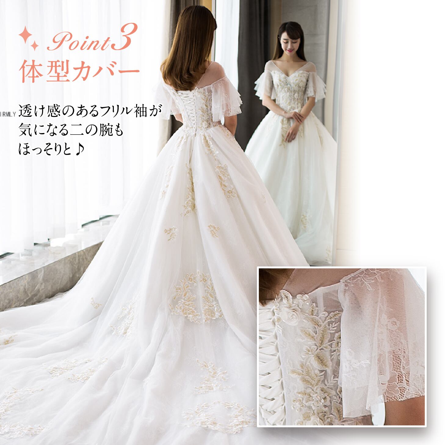 フリルの袖があって気になる二の腕を隠せます。
