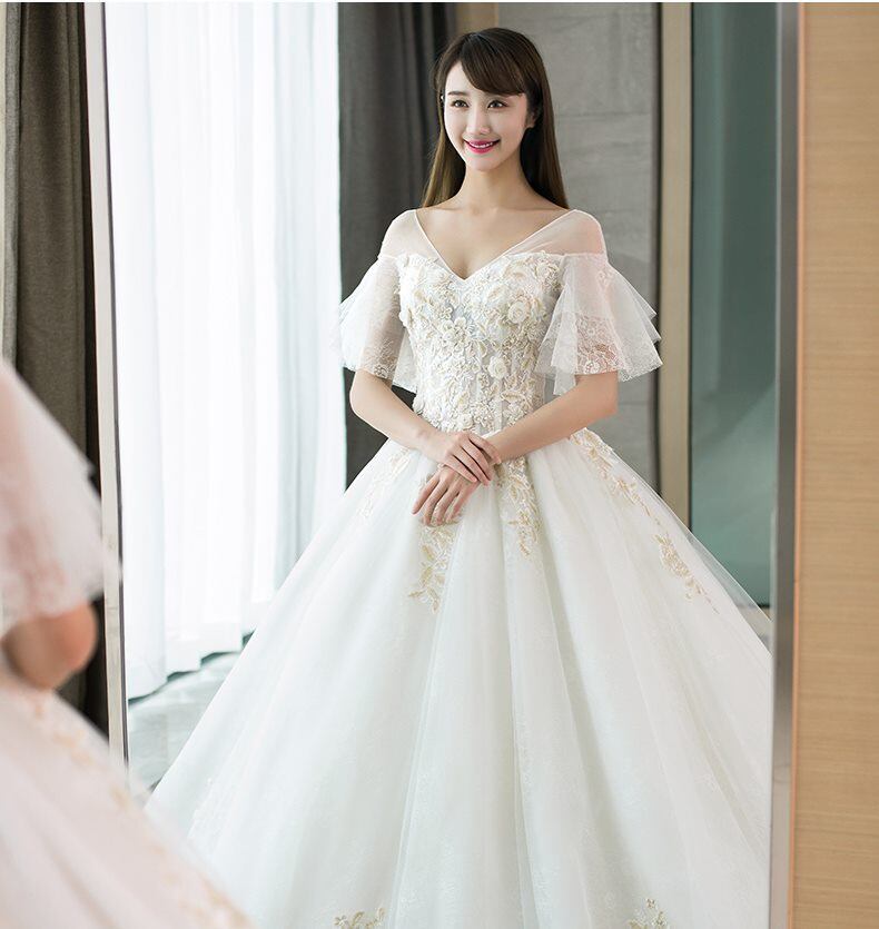 Vネック 刺繍 Aライン 半袖 フリル ウェディングドレス 白 二次会 花嫁 ウェディングドレス 大きいサイズ ウェディングドレス 袖あり ウェディングドレス カラードレス ウェディングドレス 大きいサイズ ウェディングドレス ミモレ丈 ウェディングドレス 二次会