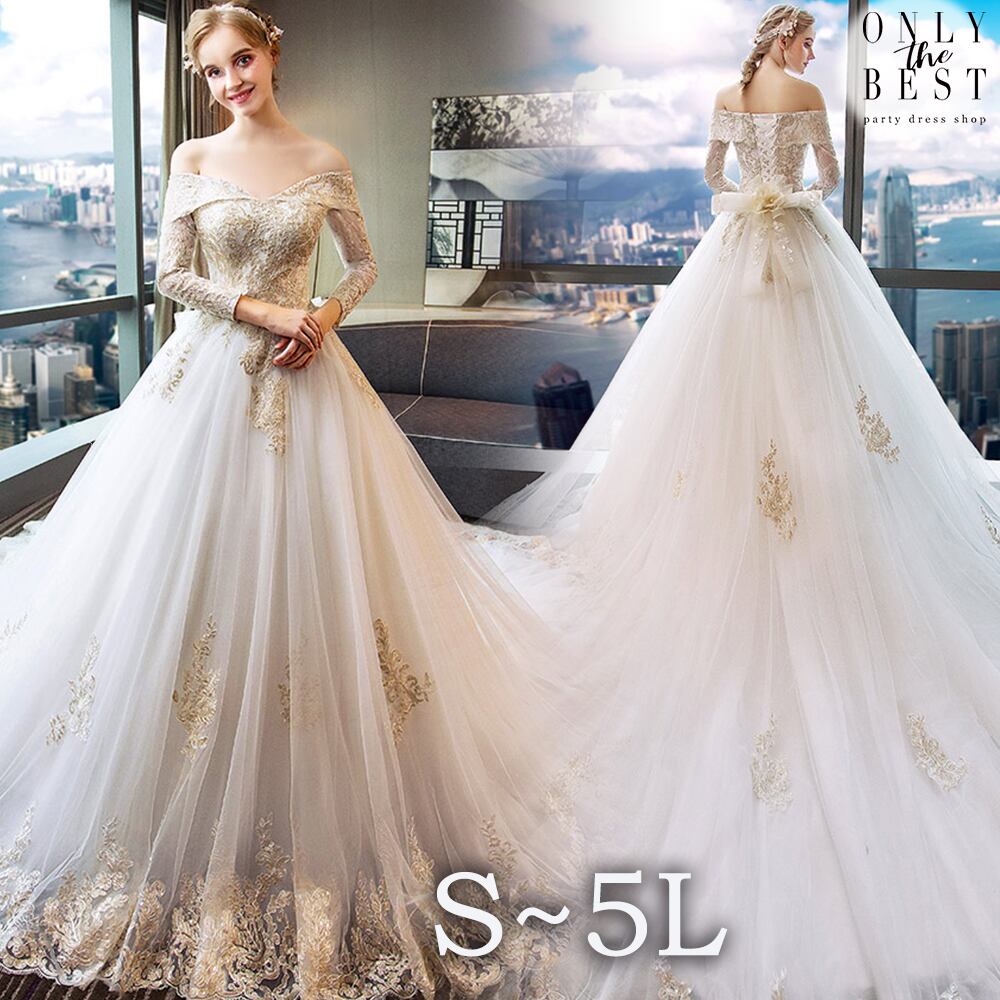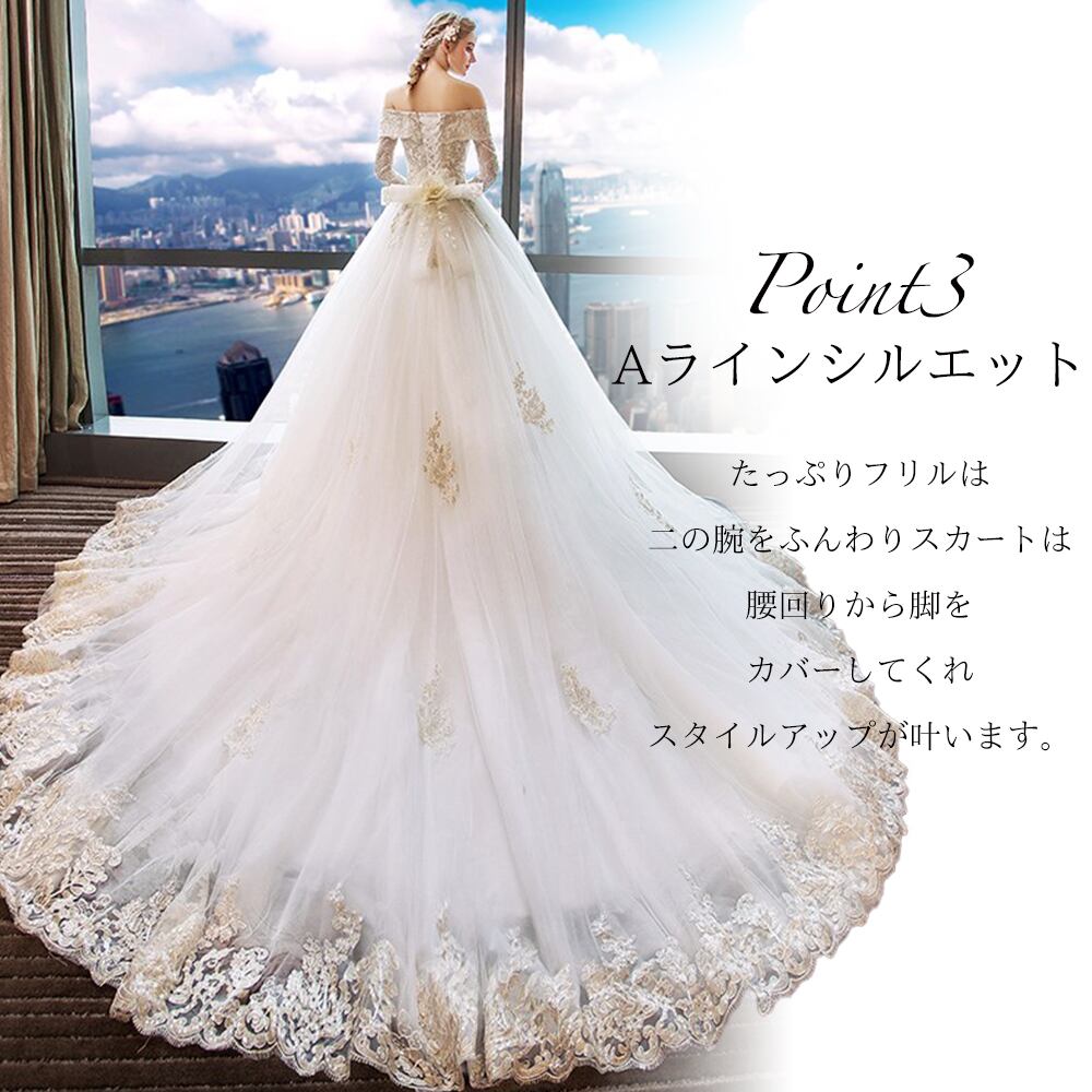 オフショルダー 長袖 刺繍 Aライン チュール レース ロング ウェディングドレス 白 二次会 花嫁 ウェディング ドレス 新作 激安 ウェディング 花嫁 白 ウェディングドレス 二次会 花嫁 ウェディングドレス オフショルダー 長袖ウェディングドレス 大きいサイズ 花嫁 ドレス
