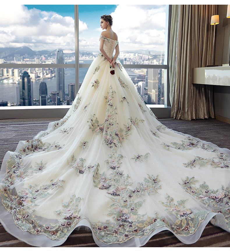 オフショルダー カラー刺繍 パール ロングトレーン ウェディングドレス 白 二次会 花嫁 ウェディング ドレス ショップ 激安 花嫁ドレス ウェディングドレス カラードレス ウェディングドレス 大きいサイズ ウェディングドレス ミモレ丈 ウェディングドレス 二次会 Aライン