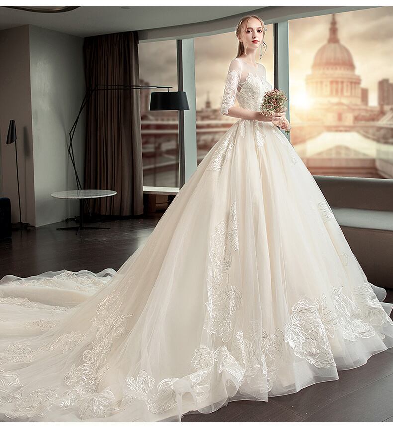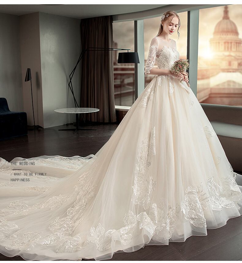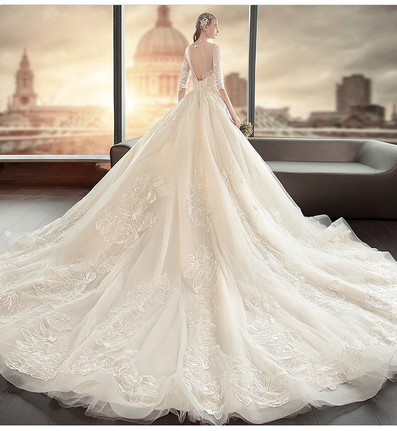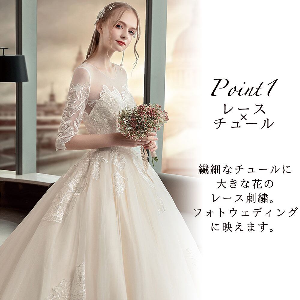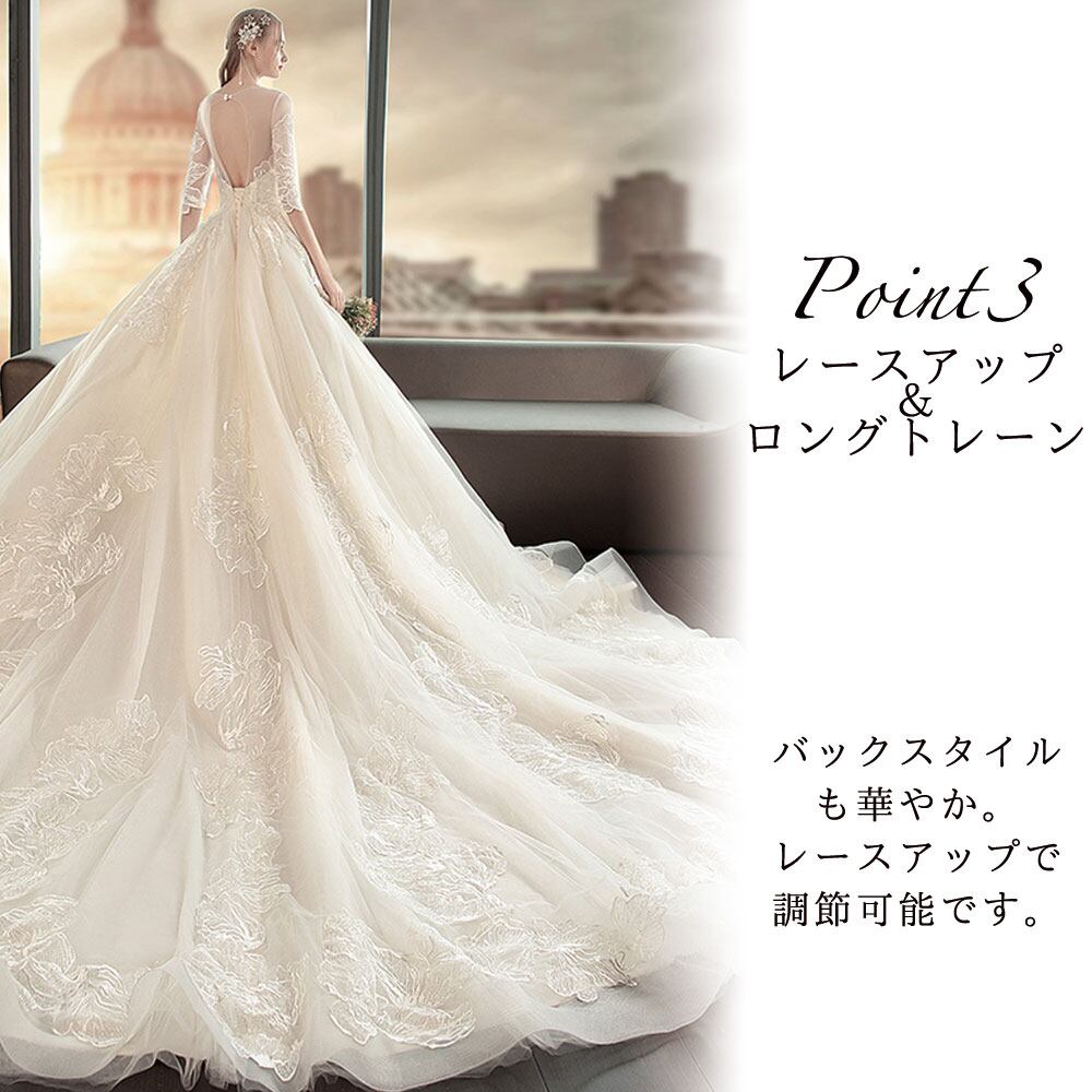 刺繍 レース 五分丈 ロングトレーン Aライン ウェディングドレス 白 二次会 花嫁 ウェディングドレス 大きいサイズ 袖あり 海外挙式 ウェディングドレス カラードレス ウェディングドレス 大きいサイズ ウェディングドレス ミモレ丈 ウェディングドレス 二次会 Aライン