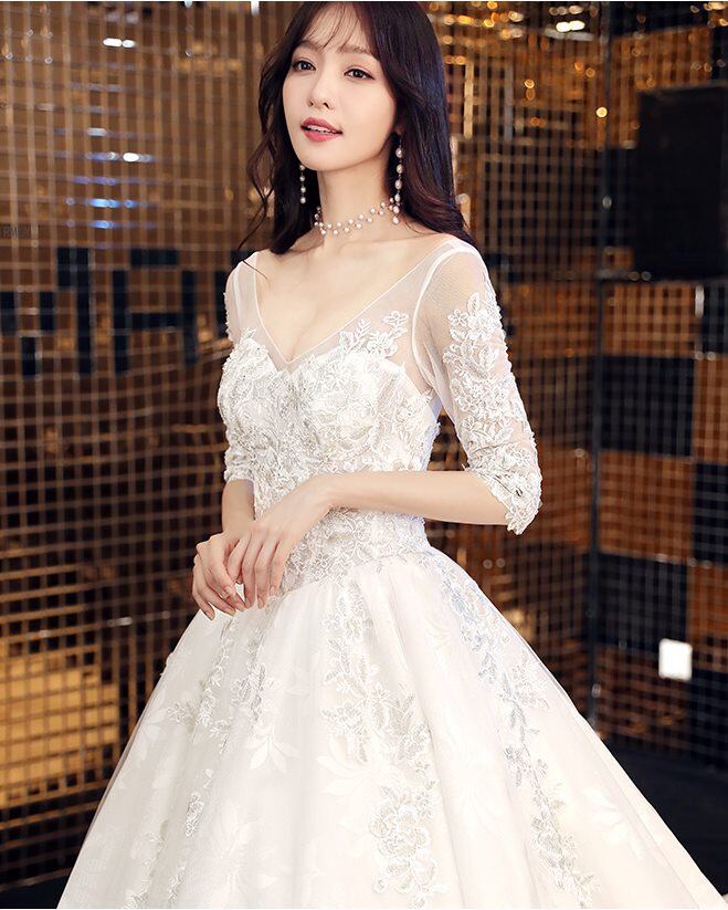 シースルーレース 刺繍 袖あり ロングトレーン Aライン ウェディングドレス 白 二次会 花嫁 ウェディングドレス 大きいサイズ 海外挙式 ウェディングドレス カラードレス 長袖ウェディングドレス 大きいサイズ ウェディングドレス ミモレ丈 ウェディングドレス 二次会