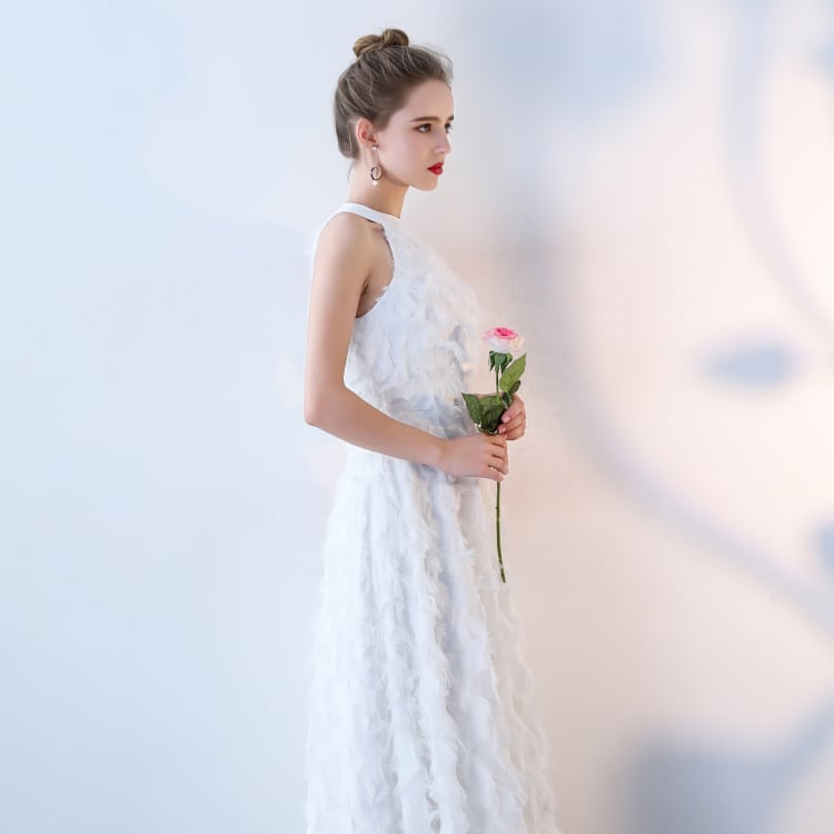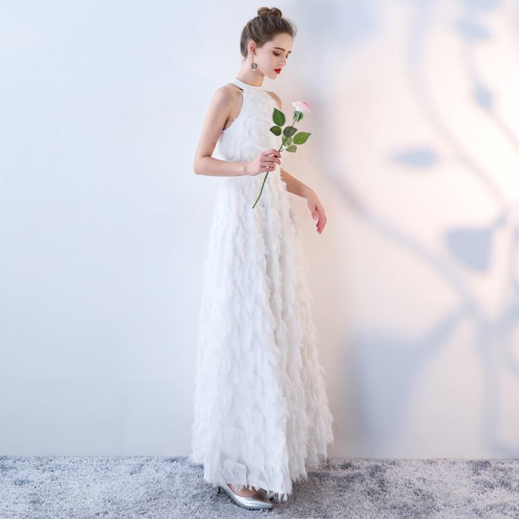 ウエディングドレス フェザー ホルターネック スタイリッシュ 上品 エレガント パーティー XS S M L XL XXL オーダーメイド可能