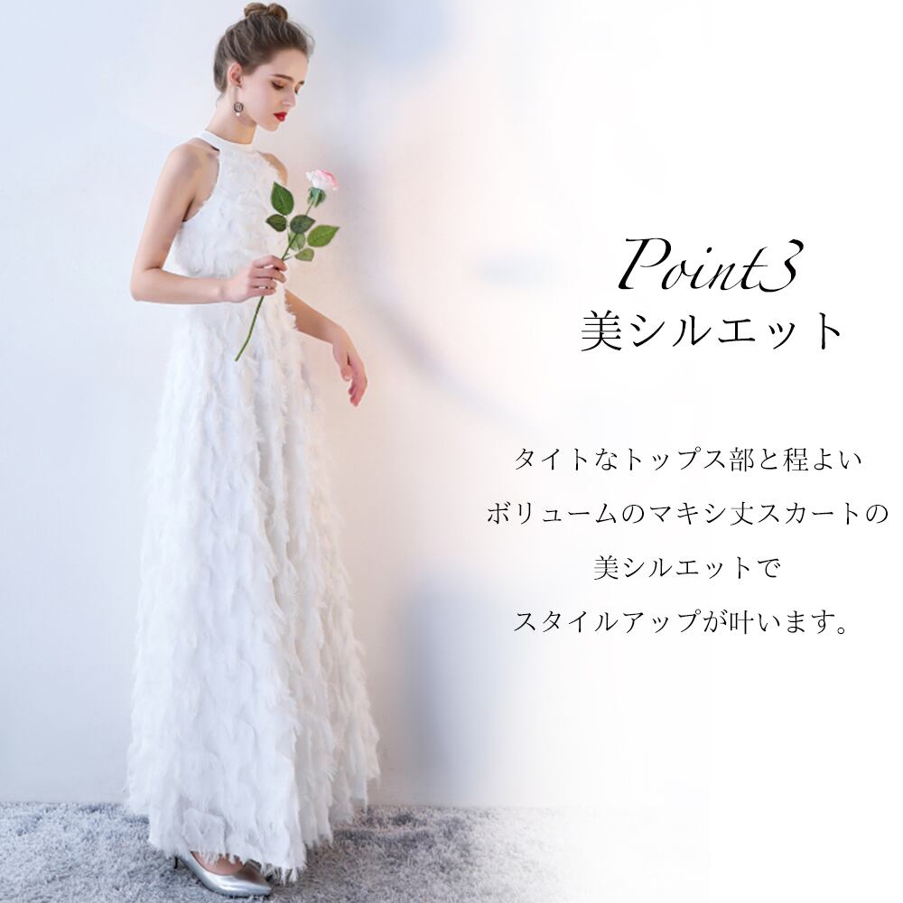 大人気 ふわふわフェザー ホルターネック ウェディングドレス 白 二次会 花嫁 ウェディングドレス 大きいサイズ激安ウェディングドレス 二次会 激安 カラードレス ミモレ丈 オフショルダー マキシ丈 結婚式ドレス 演奏会用 ロングドレス 体型カバー スレンダー big_ac
