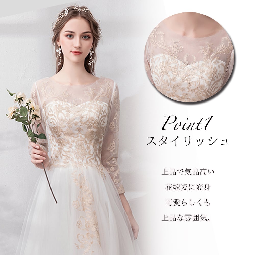 大人気 チュール ウェディングドレス 白 二次会 花嫁 ドレス ワンピース 二次会 ドレス 花嫁 ウェディングドレス ナチュラル 長袖ウェディングドレス レース 袖あり ウェディングドレス 大きいサイズ aライン 格安 ウェディングドレス ロング ミモレ丈 カラードレス 販売 激安