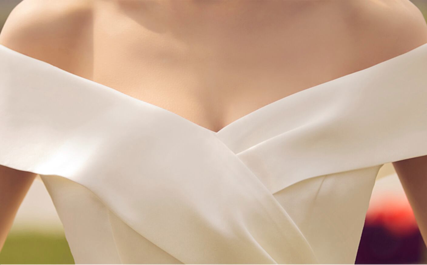 サテン 2019年 シンプル オフショル ホワイト スリム 結婚式 花嫁のドレス
