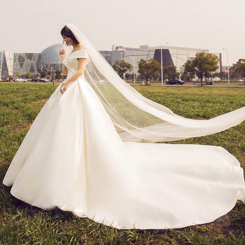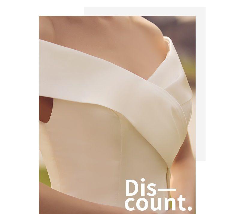 サテンホワイト オフショルダー トレーン ウエディングドレス 二次会 花嫁 ワンピース ドレス ロングドレス パーティードレス