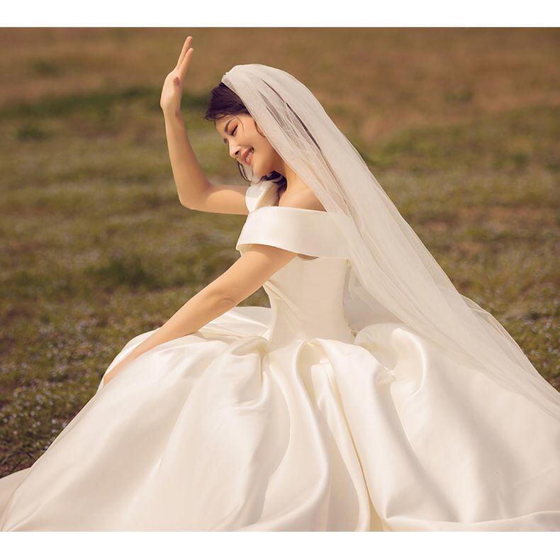 サテン ホワイト オフショルダー トレーン ウエディングドレス 二次会 花嫁 ワンピース ドレス ロングドレス パーティードレス
