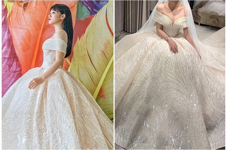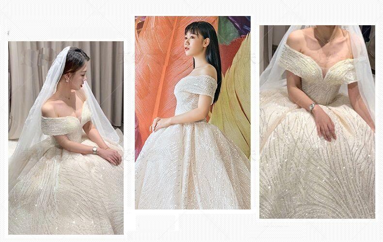 白 オフショルダー トレーン ウエディングドレス 二次会 花嫁 ワンピース ドレス ロングドレス パーティードレス