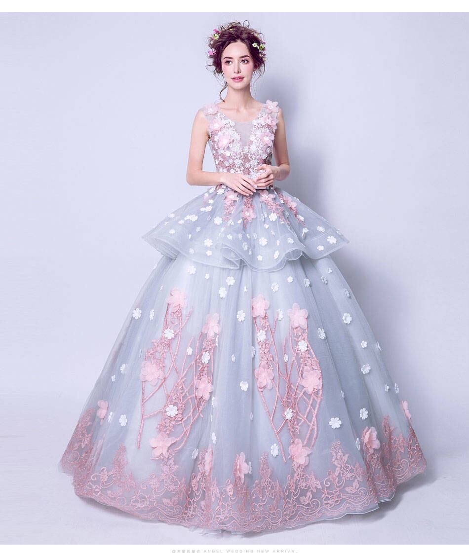 花柄 プリンセスライン カラードレス グレー ステージドレスウェディングドレス 激安 ウェディングドレス 白 二次会 花嫁 ウェディングドレス カラードレス ウェディングドレス 大きいサイズ