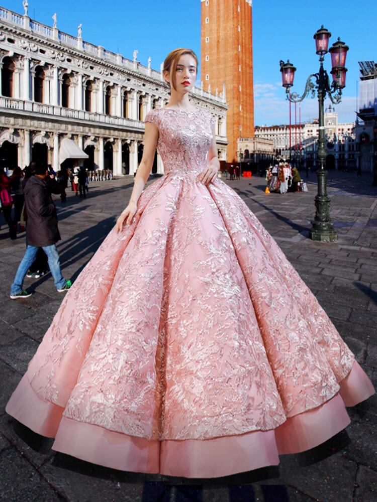 プリンセスライン ピンクウェディングドレス 白 二次会 花嫁 ウェディングドレス カラードレス ウェディングドレス 大きいサイズ ドレス 花嫁 販売 二次会 可愛い 衣装 結婚式 おしゃれ 激安 人気