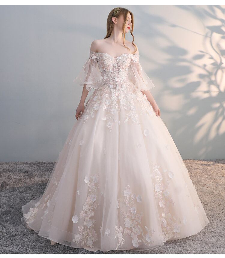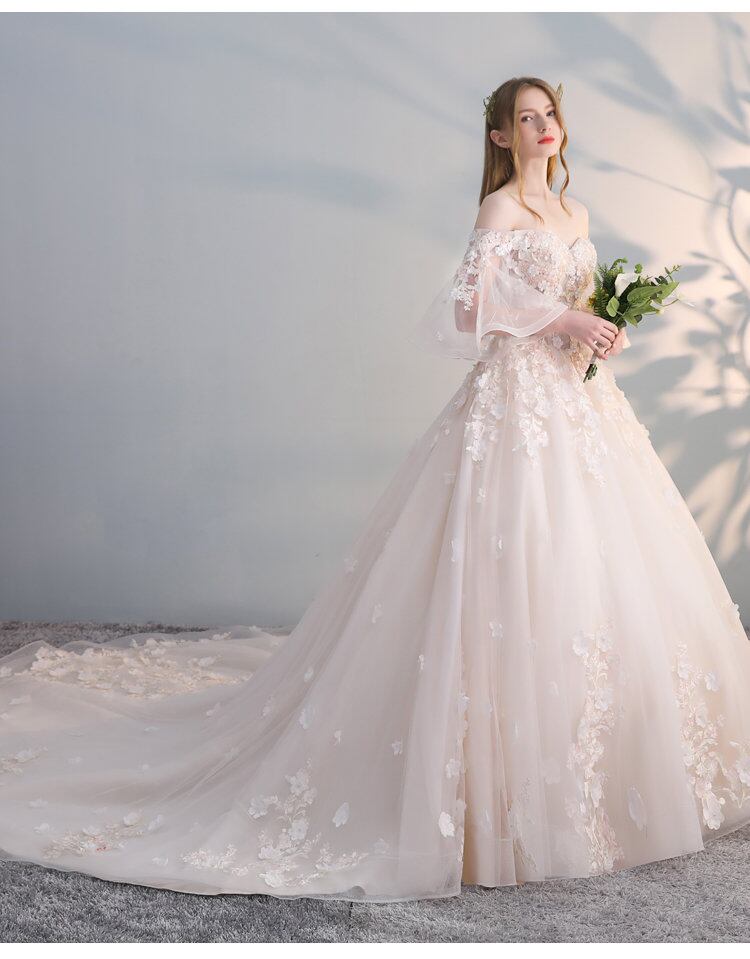 着痩せ ロングテール シャンパン色 ホワイトウェディングドレス 白 二次会 花嫁 ウェディングドレス カラードレス ウェディングドレス 大きいサイズ ドレス 花嫁 販売 二次会 可愛い 衣装 結婚式 おしゃれ 激安 人気 Aライン 長袖ウェディングドレス