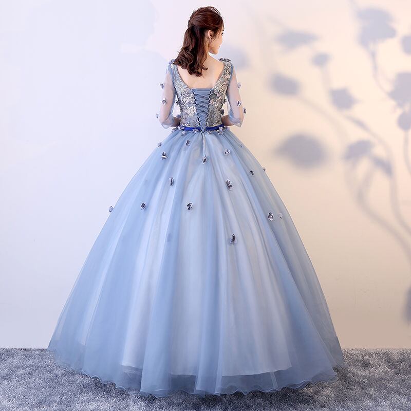 Vネック 五分袖 ブルー ウェディングドレス 二次会 花嫁 ウェディングドレス カラードレス 長袖ウェディングドレス 大きいサイズ 結婚式 謝恩会 発表会 演奏会 ドレス 花嫁 販売 二次会 可愛い 衣装 結婚式 おしゃれ 激安 人気 Aライン
