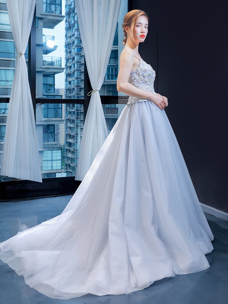 グレー20代 30代 チュールスカート 韓国 ホルターネック ノースリーブ ウェディングドレス 花嫁 ウェディングドレス カラードレス ウェディングドレス 大きいサイズ 結婚式 謝恩会 発表会 演奏会 ドレス 花嫁 販売 二次会 可愛い 衣装 結婚式 おしゃれ 激安 人気 Aライン