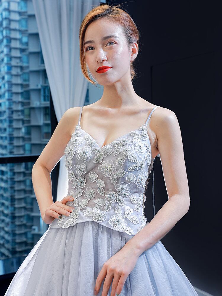 グレー20代 30代 チュールスカート 韓国 ホルターネック ノースリーブ ウェディングドレス 二次会 花嫁 ウェディングドレス カラードレス ウェディングドレス 大きいサイズ 結婚式 謝恩会 発表会 演奏会