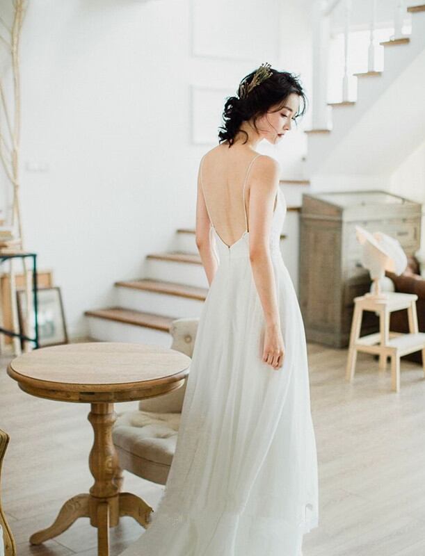 ウエディングドレス Aライン Vネック スタイリッシュ 上品 エレガント パーティー S M L XL